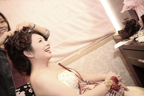 所以珮甄一早5點就要到我家幫我做造型