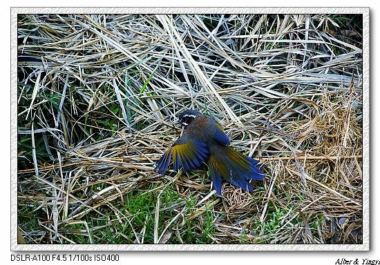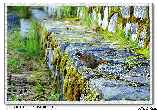 一樣在涼亭旁還是有見到金翼白眉的蹤跡 跟先前那隻比這群真的胖嘟嘟的 可能是涼亭都是山有休息吃飯的地方 可是伙食充足呀 才能長的帳樣胖嘟嘟的勒