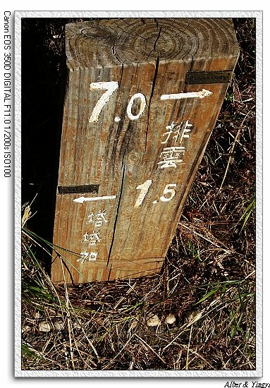 天氣好 爬山心情就好 而且沿途可以欣賞不一樣的景觀 真的是超讚的啦 走了好久 終於又看見了里程碑 已經走了5公里囉 再...再3.5公里就可以到達排雲山莊啦